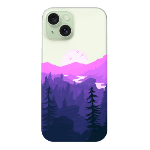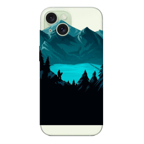 Apple iPhone 15 Turkuaz Dağ Transparent Şeffaf Telefon Kılıfı