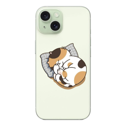 Apple iPhone 15 Uykucu Kedi Lila Renkli Silikon Telefon Kılıfı