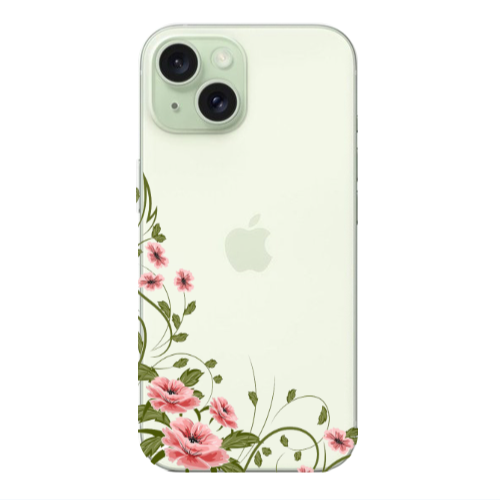 Apple iPhone 15 Köşe Çiçeği Lila Renkli Silikon Telefon Kılıfı