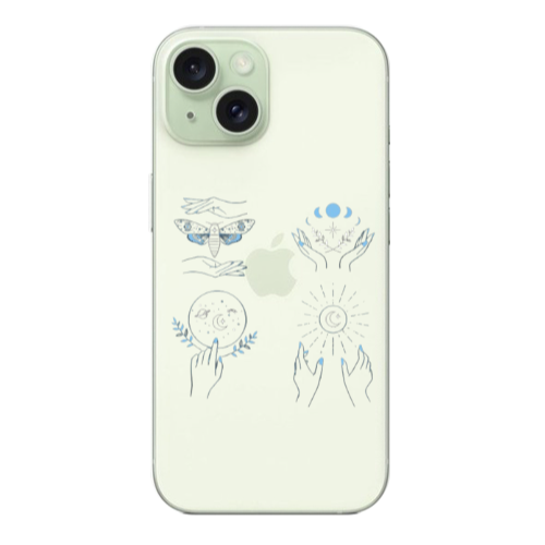 Apple iPhone 15 Kelebek El Sarı Renkli Silikon Telefon Kılıfı