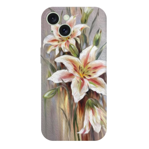 Apple iPhone 15 Yaz Bitki Pembe Renkli Silikon Telefon Kılıfı