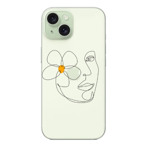 Apple iPhone 15 Çiçek Line Kadın Pembe Renkli Silikon Telefon Kılıfı