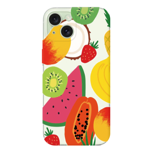 Apple iPhone 15 Meyveler Kırmızı Renkli Silikon Telefon Kılıfı