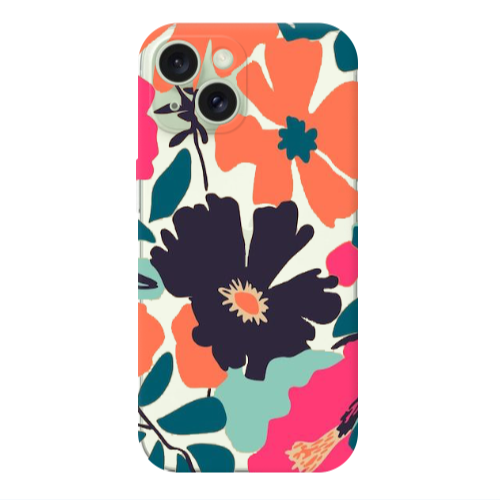 Apple iPhone 15 Papatyalar Siyah Renkli Silikon Telefon Kılıfı
