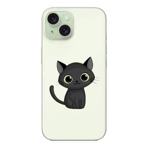 Apple iPhone 15 Siyah Kedi Sarı Renkli Silikon Telefon Kılıfı