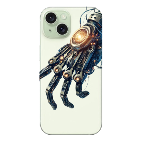 Apple iPhone 15 Robotik El Lila Renkli Silikon Telefon Kılıfı