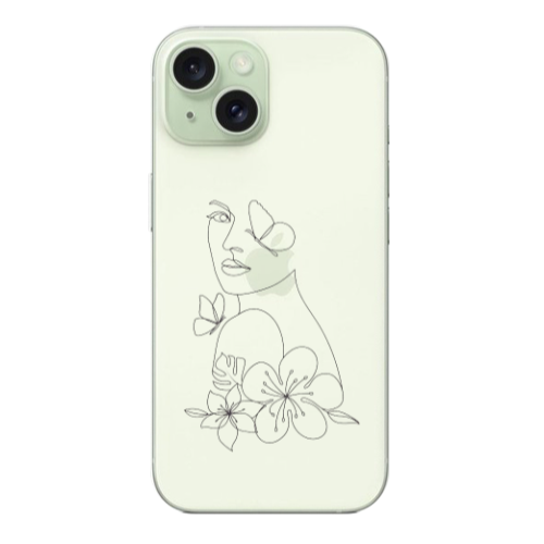 Apple iPhone 15 Plus Kelebek Kadın Açık Yeşil Renkli Silikon Telefon Kılıfı