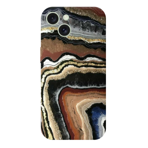 Apple iPhone 15 Plus Çizgili Kahve Lila Renkli Silikon Telefon Kılıfı