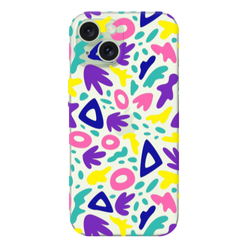 Apple iPhone 15 Plus Karışık Sanat Kırmızı Renkli Silikon Telefon Kılıfı