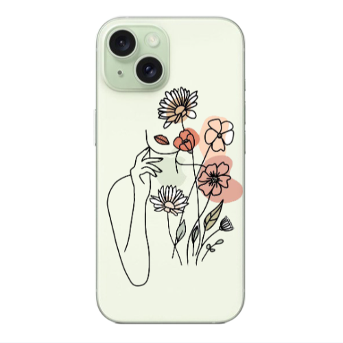 Apple iPhone 15 Plus Kadın Çiçek Sarı Renkli Silikon Telefon Kılıfı