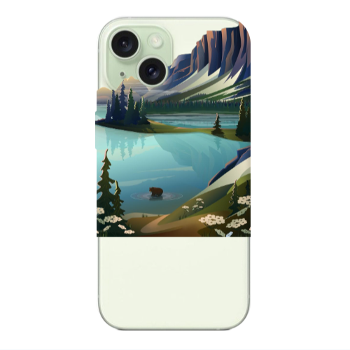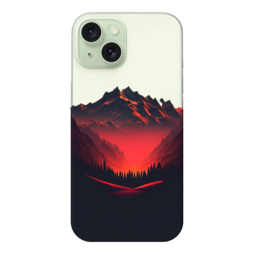 Apple iPhone 15 Plus Kızıl Dağ Koyu Yeşil Renkli Silikon Telefon Kılıfı