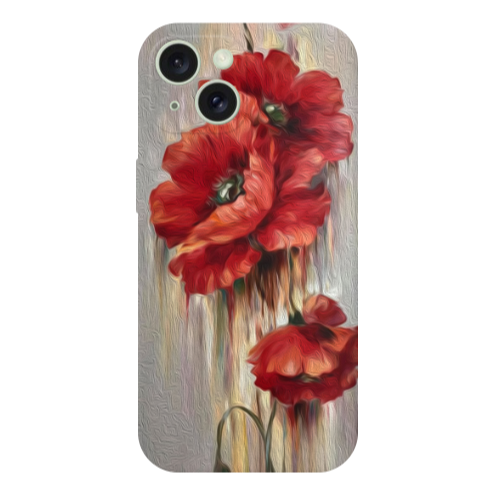 Apple iPhone 15 Plus Kırmızı Çiçek Sarı Renkli Silikon Telefon Kılıfı