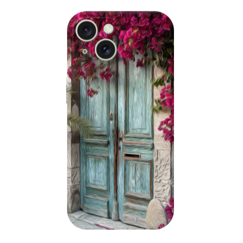 Apple iPhone 15 Plus Mavi Kapı Lila Renkli Silikon Telefon Kılıfı