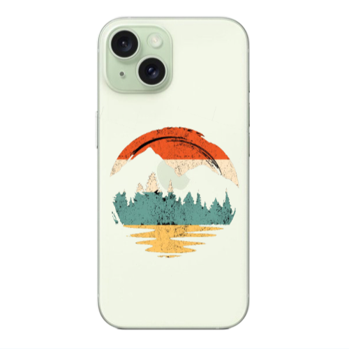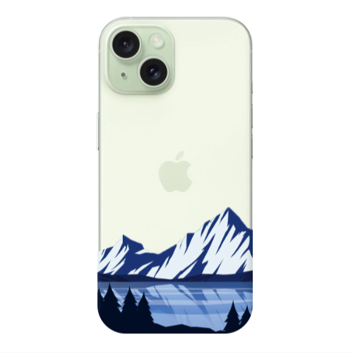 Apple iPhone 15 Plus Şeffaf Manzara Koyu Yeşil Renkli Silikon Telefon Kılıfı
