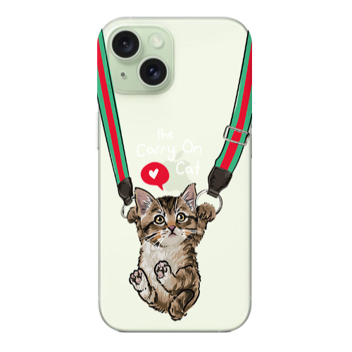 Apple iPhone 15 Plus The Carry On Cat Kırmızı Renkli Silikon Telefon Kılıfı