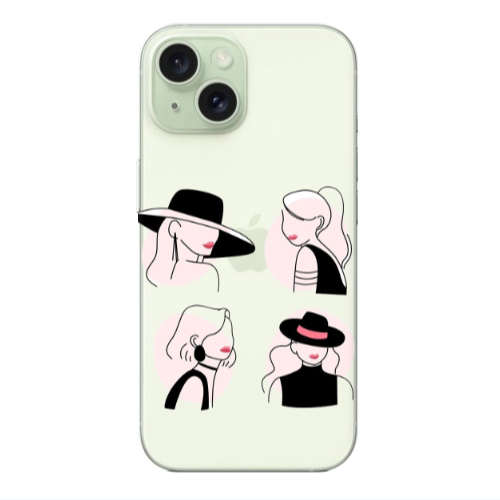 Apple iPhone 15 Plus Gri Kadın Kırmızı Renkli Silikon Telefon Kılıfı