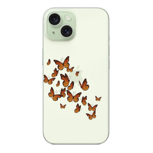 Apple iPhone 15 Plus Kahve Kelebekler Siyah Renkli Silikon Telefon Kılıfı