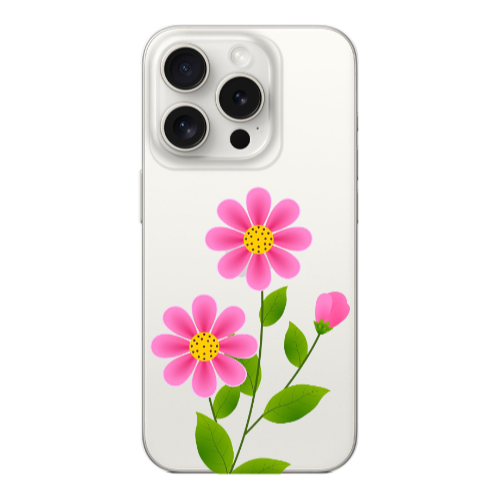 Apple iPhone 15 Pro Pembe Çiçekler Kırmızı Renkli Silikon Telefon Kılıfı