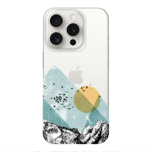 Apple iPhone 15 Pro Dağlar Ay Siyah Renkli Silikon Telefon Kılıfı