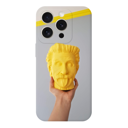 Apple iPhone 15 Pro Max Einstein Büst Krem Renkli Silikon Telefon Kılıfı