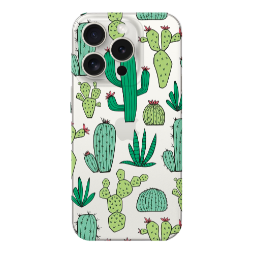 Apple iPhone 15 Pro Max Kaktüsler Lila Renkli Silikon Telefon Kılıfı
