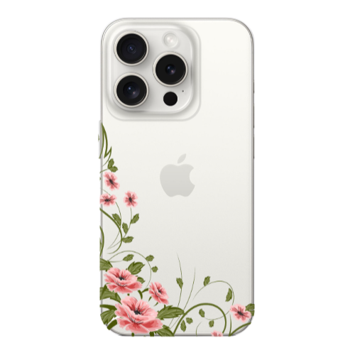 Apple iPhone 15 Pro Max Köşe Çiçeği Pembe Renkli Silikon Telefon Kılıfı