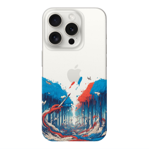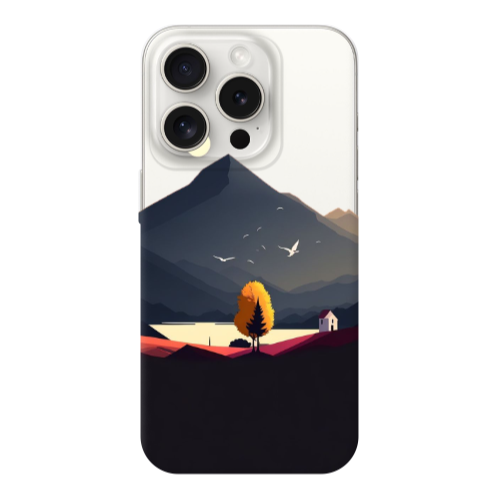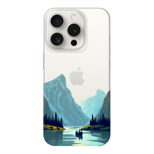 Apple iPhone 15 Pro Max Mavi Dağlar Siyah Renkli Silikon Telefon Kılıfı