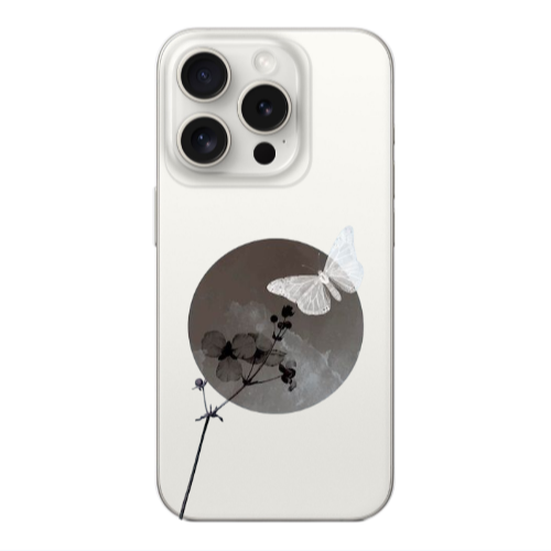 Apple iPhone 15 Pro Max Çiçek Kelebek Koyu Yeşil Renkli Silikon Telefon Kılıfı