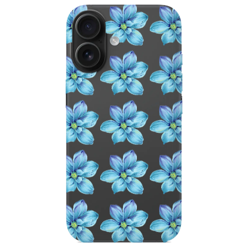 Apple iPhone 16 Plus Mavi Sanat Çiçek Sarı Renkli Silikon Telefon Kılıfı