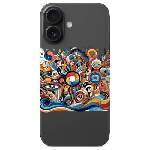Apple iPhone 16 Plus Mavi Kapı Kırmızı Renkli Silikon Telefon Kılıfı