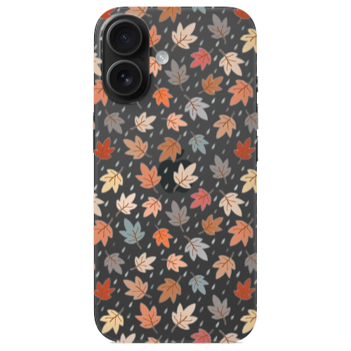 Apple iPhone 16 Plus Renkli Yapraklar Pembe Renkli Silikon Telefon Kılıfı