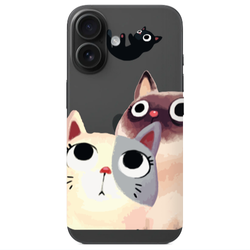 Apple iPhone 16 Plus Cats Siyah Renkli Silikon Telefon Kılıfı