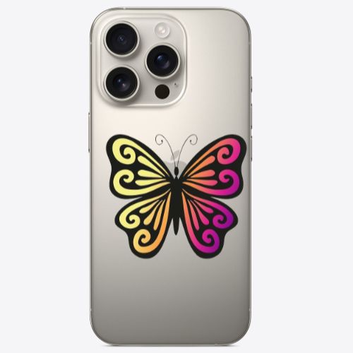 Apple iPhone 16 Pro Rengarenk Kelebek2 Pembe Renkli Silikon Telefon Kılıfı