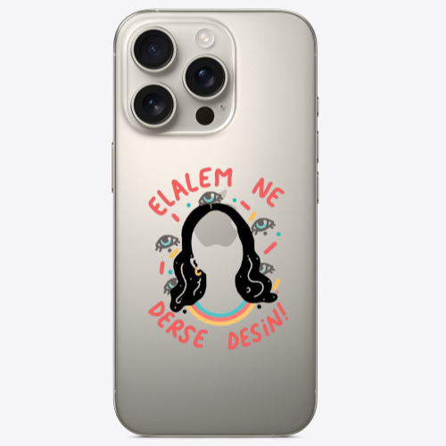 Apple iPhone 16 Pro Max Renkli Kadın Siyah Renkli Silikon Telefon Kılıfı
