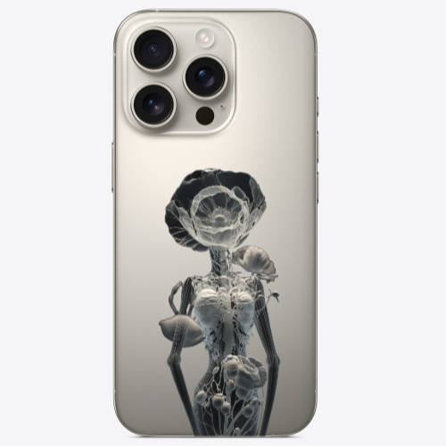 Apple iPhone 16 Pro Max Çiçek Kadın3 Koyu Yeşil Renkli Silikon Telefon Kılıfı