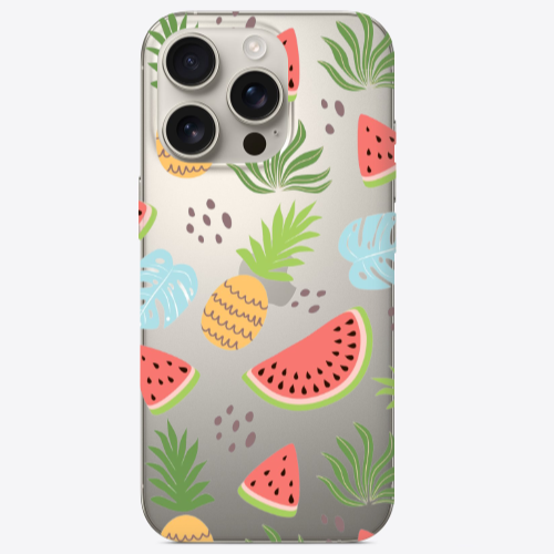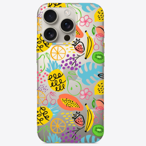 Apple iPhone 16 Pro Max Karışık Meyve4 Pembe Renkli Silikon Telefon Kılıfı