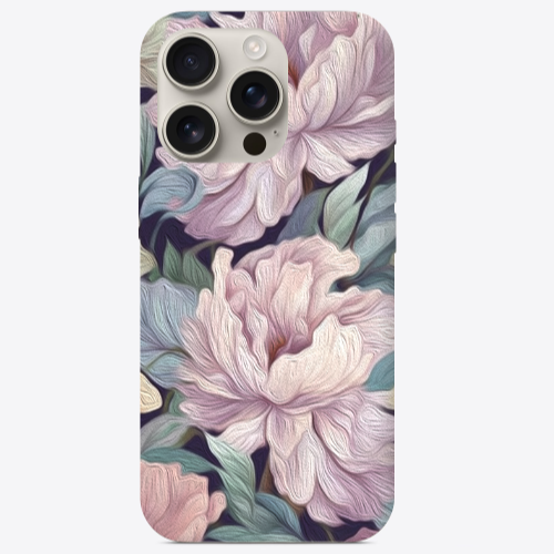 Apple iPhone 16 Pro Max Gri Çiçek Siyah Renkli Silikon Telefon Kılıfı