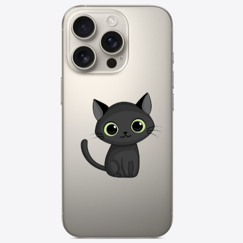 Apple iPhone 16 Pro Max Siyah Kedi Transparent Şeffaf Telefon Kılıfı