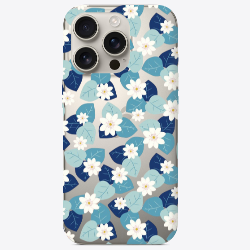 Apple iPhone 16 Pro Max Mavi Çiçek Pembe Renkli Silikon Telefon Kılıfı