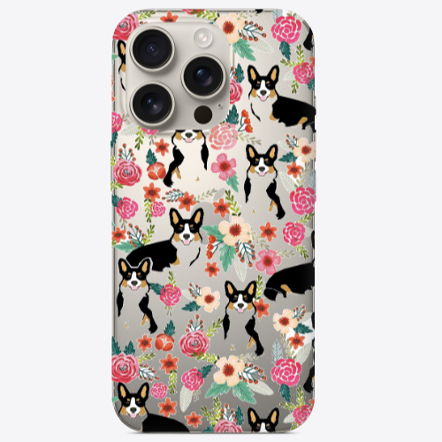 Apple iPhone 16 Pro Max Köpek Çiçekler Kırmızı Renkli Silikon Telefon Kılıfı