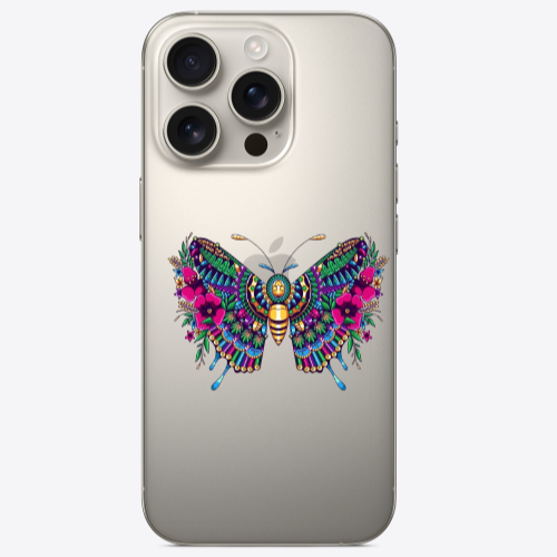 Apple iPhone 16 Pro Max Mandala Kelebek Siyah Renkli Silikon Telefon Kılıfı