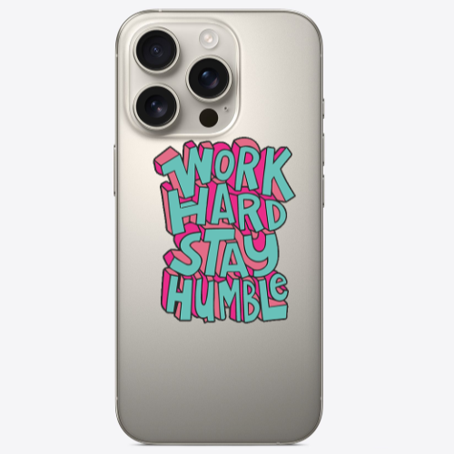 Apple iPhone 16 Pro Max Work Hard Stay Humble Pembe Renkli Silikon Telefon Kılıfı