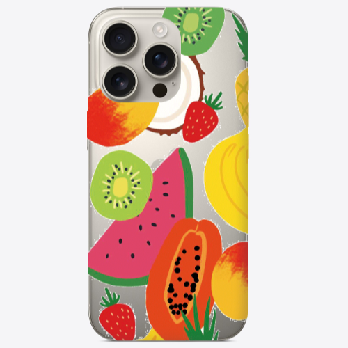 Apple iPhone 16 Pro Max Meyveler Pembe Renkli Silikon Telefon Kılıfı