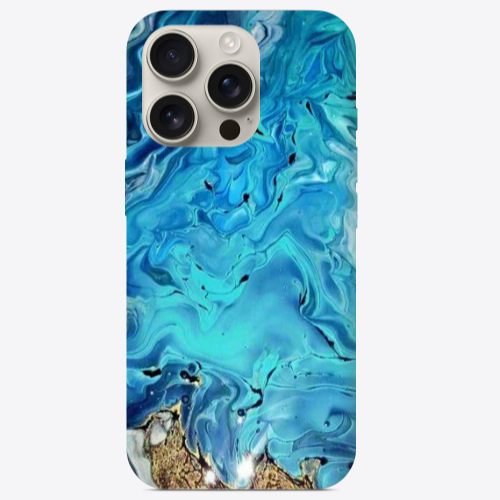 Apple iPhone 16 Pro Sulu Mavi Sarı Renkli Silikon Telefon Kılıfı