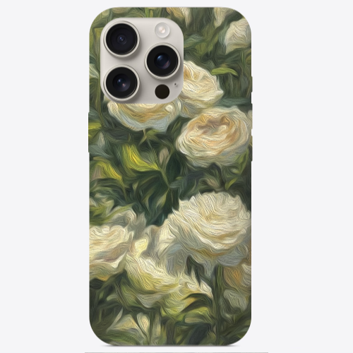 Apple iPhone 16 Pro Beyaz Gül Siyah Renkli Silikon Telefon Kılıfı