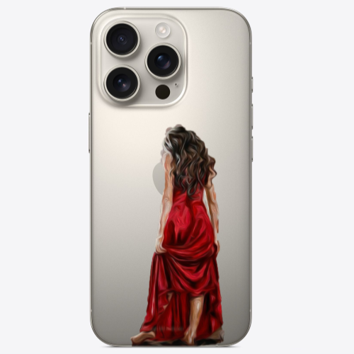 Apple iPhone 16 Pro Kırmızı Elbise Siyah Renkli Silikon Telefon Kılıfı