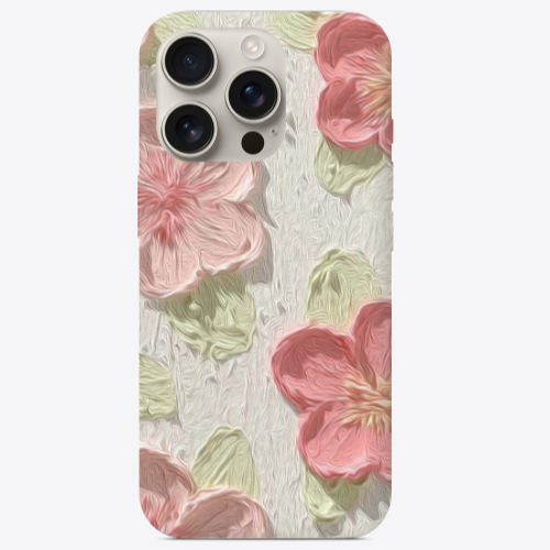 Apple iPhone 16 Pro Pembe Çiçek Koyu Yeşil Renkli Silikon Telefon Kılıfı