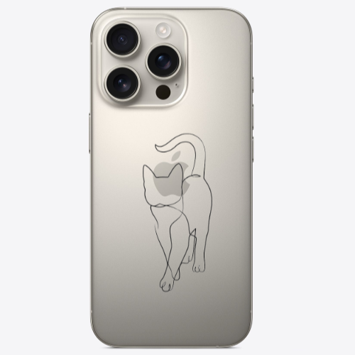 Apple iPhone 16 Pro Line Kedi Siyah Renkli Silikon Telefon Kılıfı