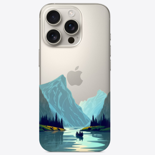 Apple iPhone 16 Pro Mavi Dağlar Siyah Renkli Silikon Telefon Kılıfı