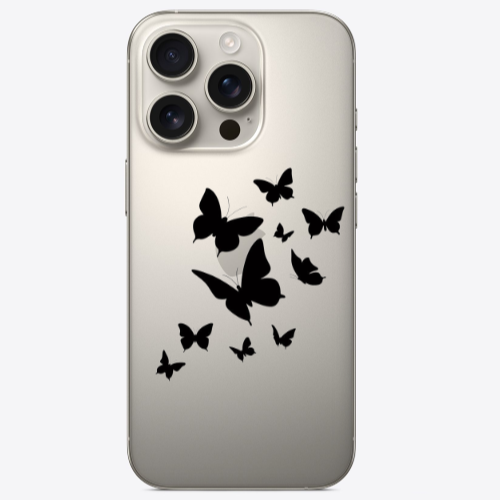 Apple iPhone 16 Pro Şeffaf Kelebek Siyah Renkli Silikon Telefon Kılıfı